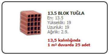 13,5’luk tuğla İstanbul Anadolu Yakası İçin Kdv ve nakliye dahil perakende adet fiyatımız 0.390 kuruştur. Bu fiyata tuğlanın yerinde indirme ücreti dahil değildir.